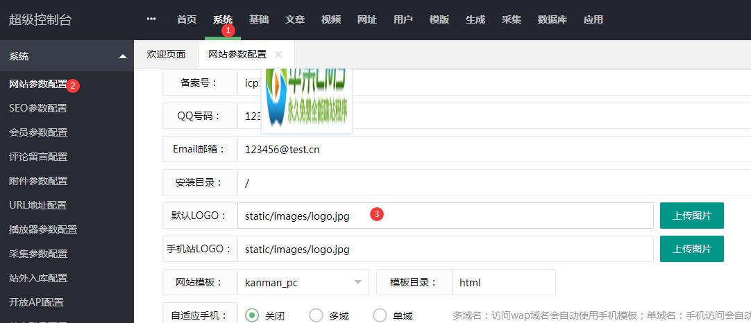 另一种替换方法就是去后台手动上传替换,进入后台 ->系统 -> 网站参数配置 -> 基本设置 -> 默认LOGO