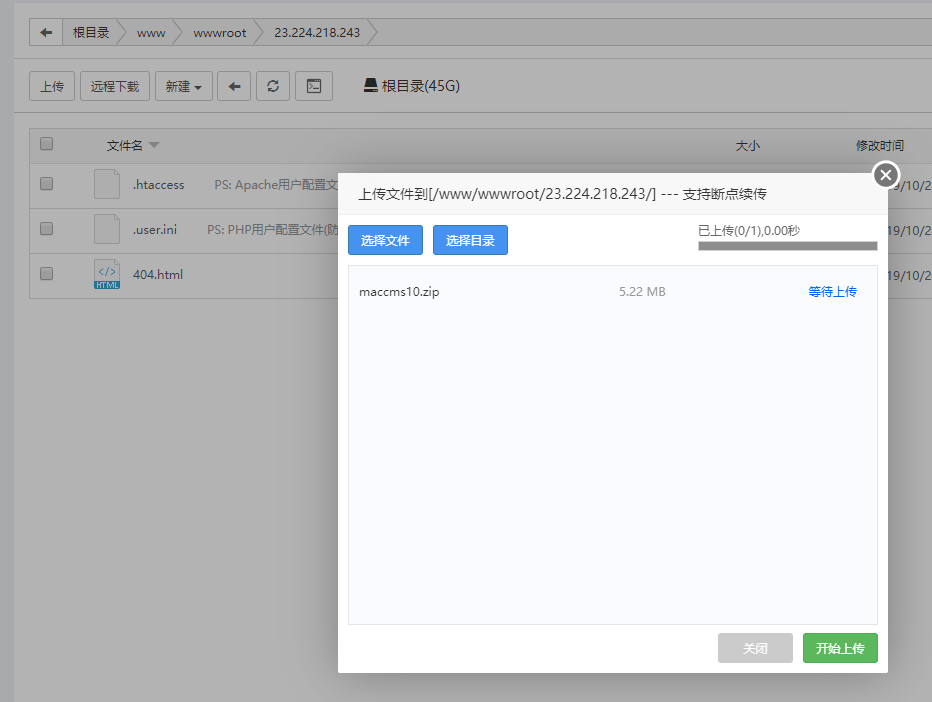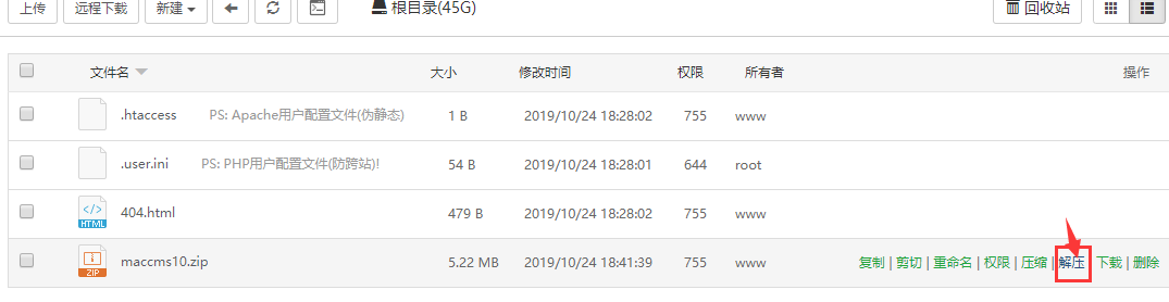 CMS的版本现在以苹果MCS V10为例。(下载地址),上传解压出来的源代码(maccms10.zip)到你的网站目录。