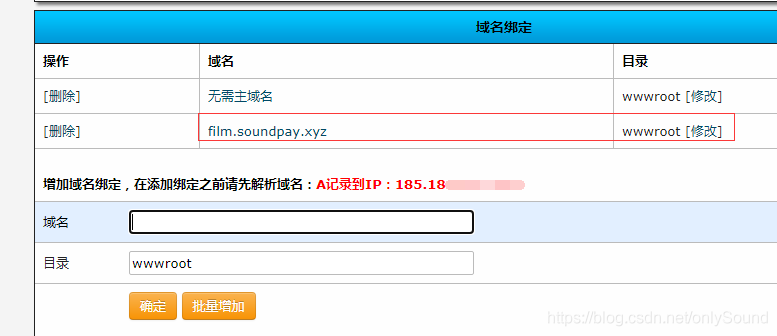 四、进入虚拟主机的控制面板,进行域名绑定