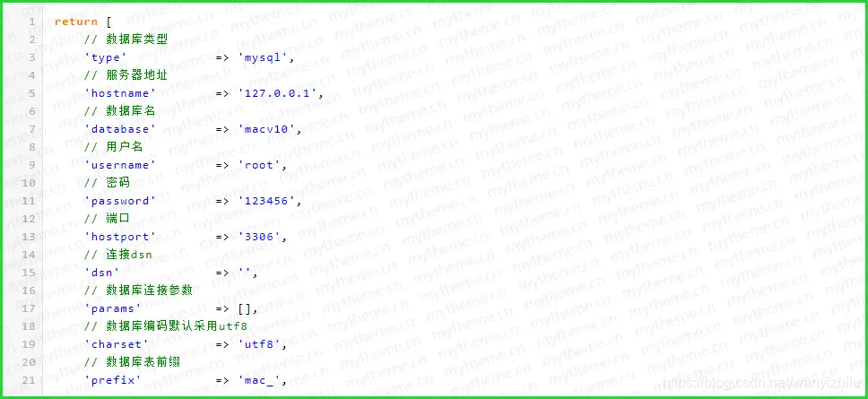 下面我们就很清楚的可以看到数据库名、用户名、密码修改对应就好了。