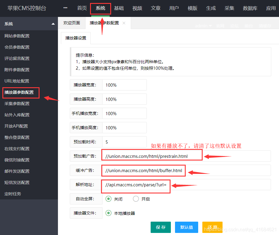 注意:如果后台自带解析口,不能播放请清除