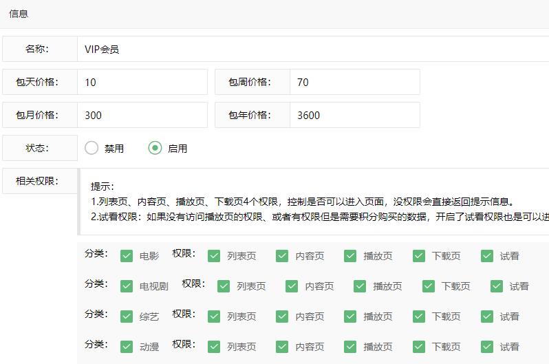 苹果cmsV10 会员收费设置 会员VIP权限设置教程