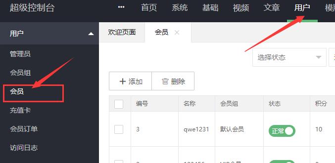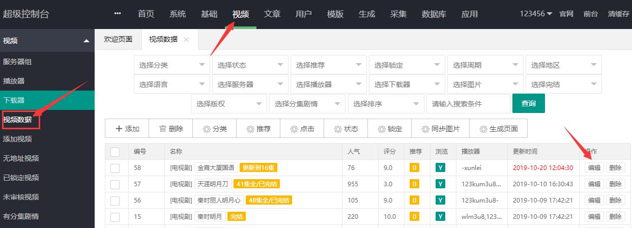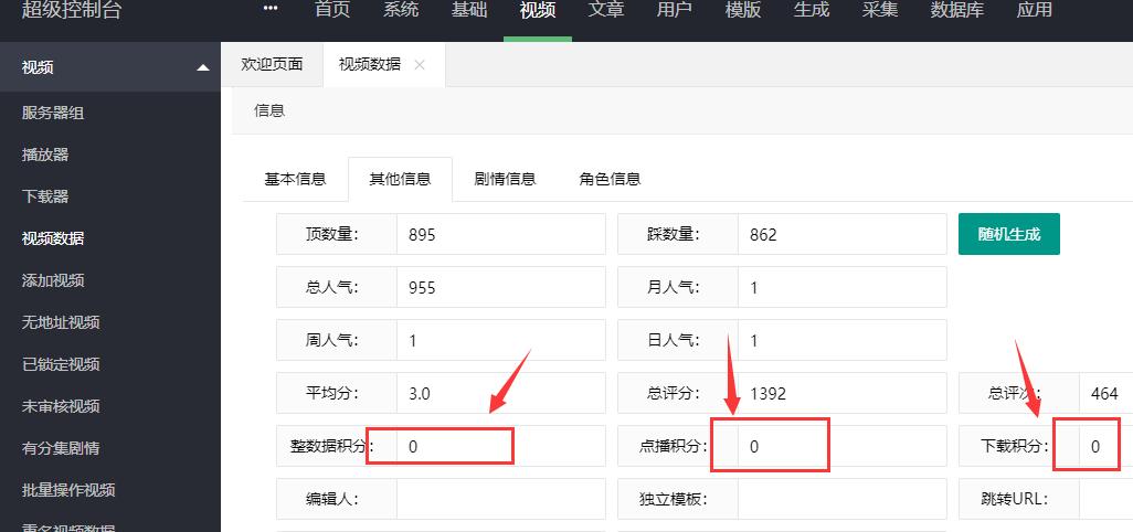 设置完毕后,进行视频积分设置,来到视频,视频数据管理