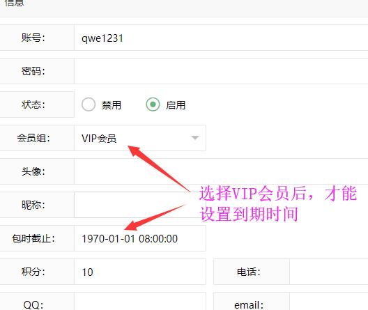 编辑会员权限,可设置升级到该会员组需要多少积分,可设置会员可浏览的页面