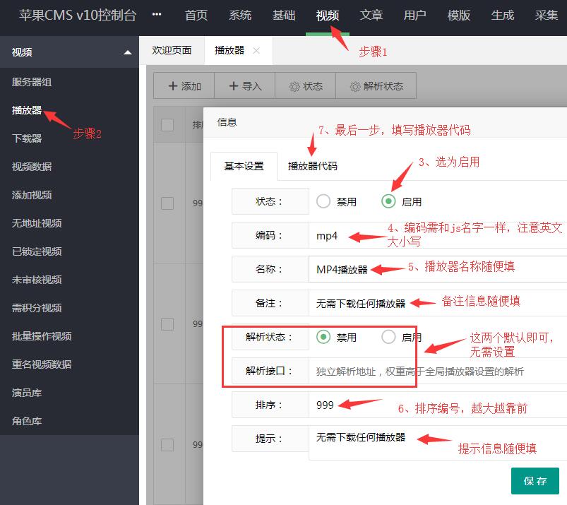 只需要添加对应的播放器,然后清理缓存即可本站提供的V10采集插件,具有一键配置播放器的功能,详情点击>>
