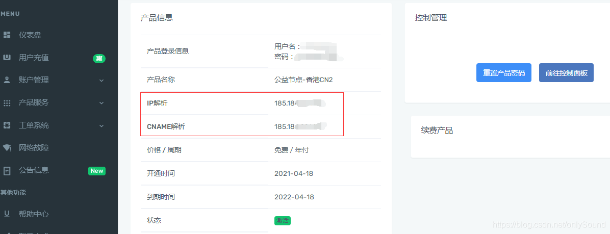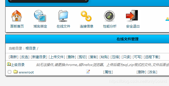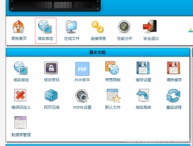 四、进入虚拟主机的控制面板,进行域名绑定