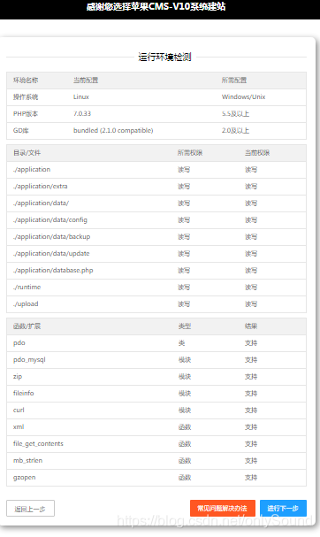 点击同意以后,下一步是系统检查环境,确保所有模块都是白的,没有发红,就点击进行下一步