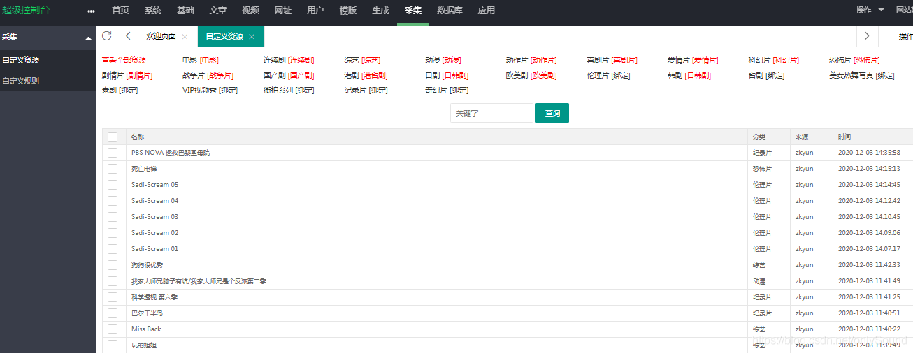 八、进入到采集菜单,添加自定义采集资源库
