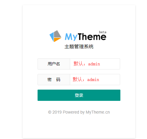成功安装后首次访问页面会跳转至主题后台,修改设置保存后不在跳转,默认账号密码admin,首次使用务必修改默认密码。